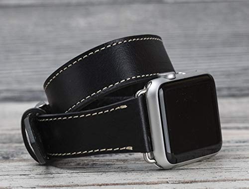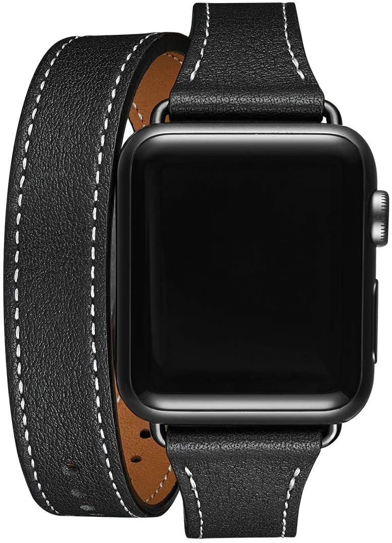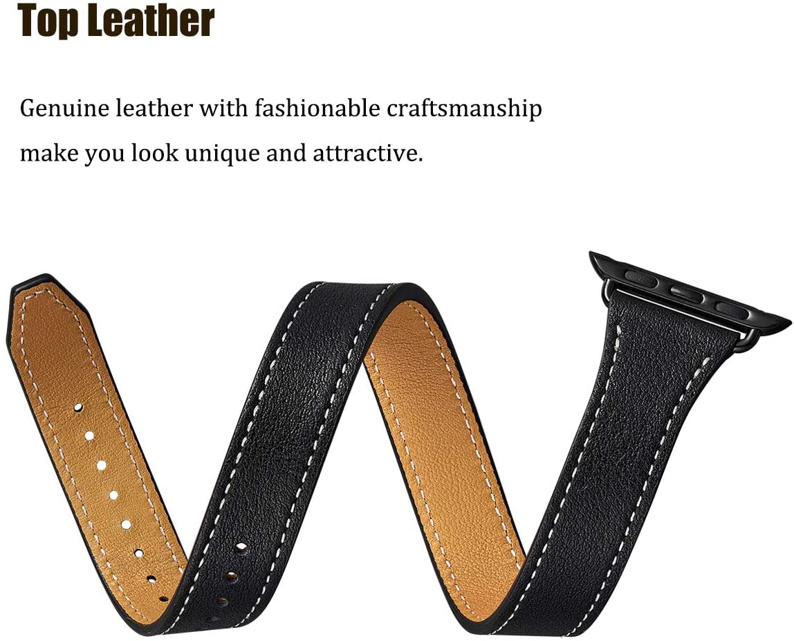 Genuine Leather Double Tour Band Compatible for Apple Watch 38mm, 40mm, 41mm, 42mm 44mm 45mm 49mm, Designed Slim Replacement Strap for iWatch Series Hermès 9 Ultra 8 7 6 SE 5 4 3 2 1
