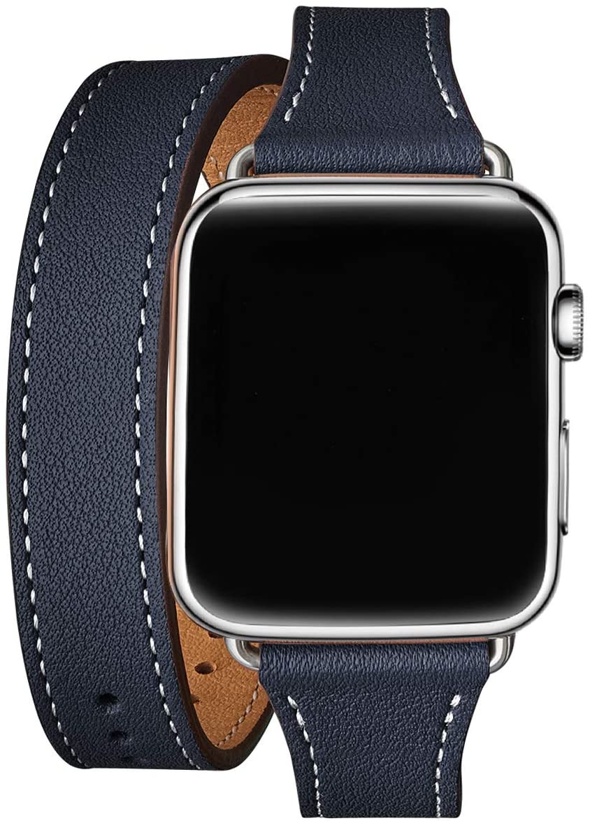 Genuine Leather Double Tour Band Compatible for Apple Watch 38mm, 40mm, 41mm, 42mm 44mm 45mm 49mm, Designed Slim Replacement Strap for iWatch Series Hermès 9 Ultra 8 7 6 SE 5 4 3 2 1