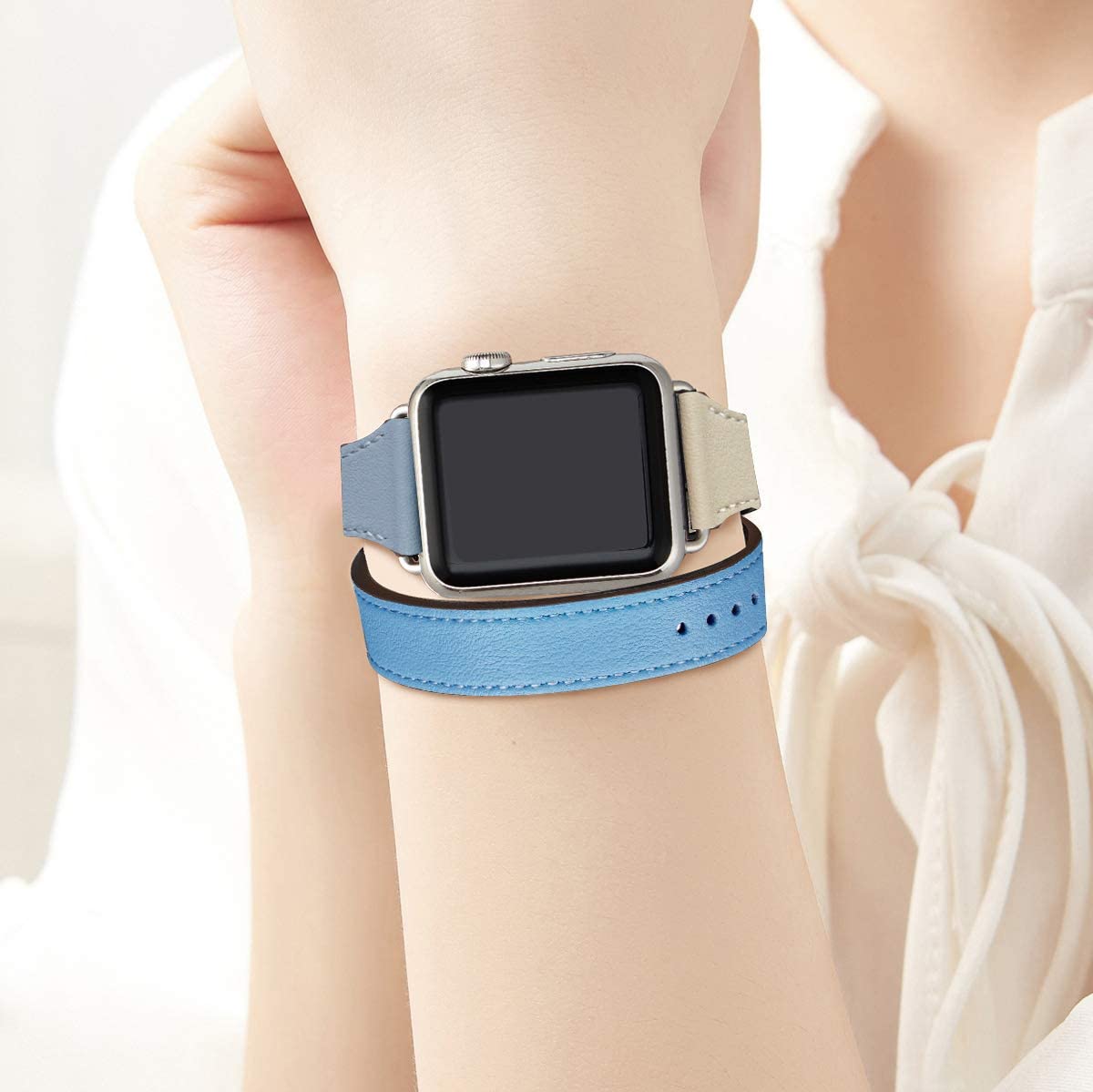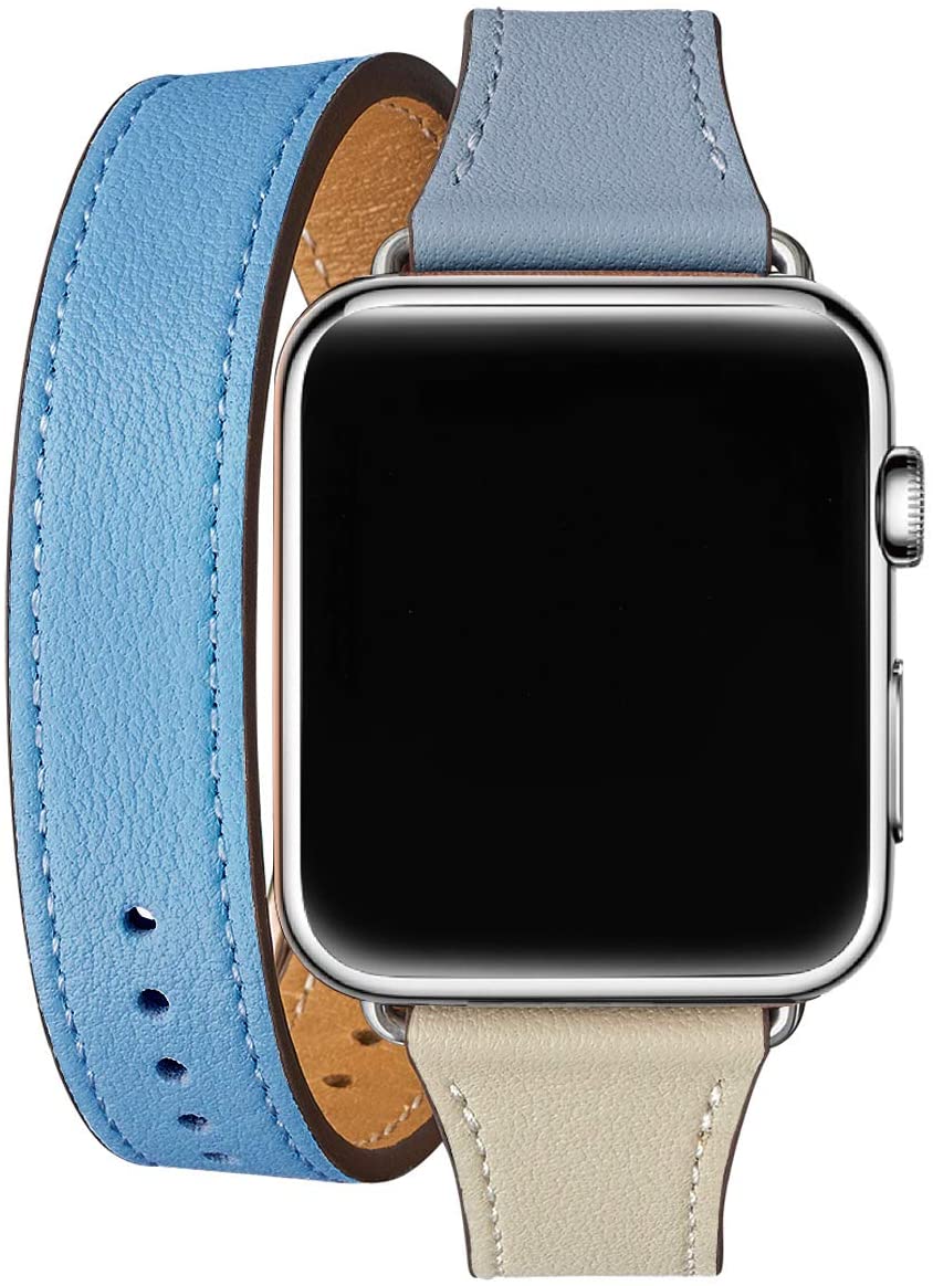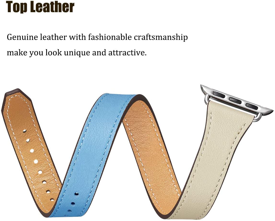 Genuine Leather Double Tour Band Compatible for Apple Watch 38mm, 40mm, 41mm, 42mm 44mm 45mm 49mm, Designed Slim Replacement Strap for iWatch Series Hermès 9 Ultra 8 7 6 SE 5 4 3 2 1