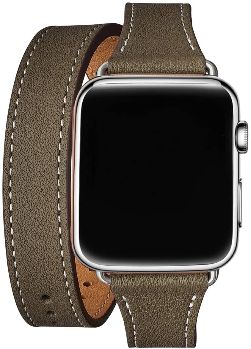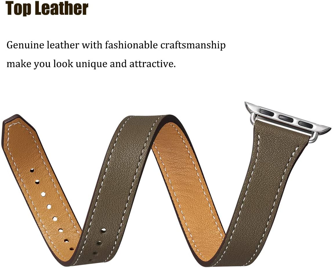 Genuine Leather Double Tour Band Compatible for Apple Watch 38mm, 40mm, 41mm, 42mm 44mm 45mm 49mm, Designed Slim Replacement Strap for iWatch Series Hermès 9 Ultra 8 7 6 SE 5 4 3 2 1