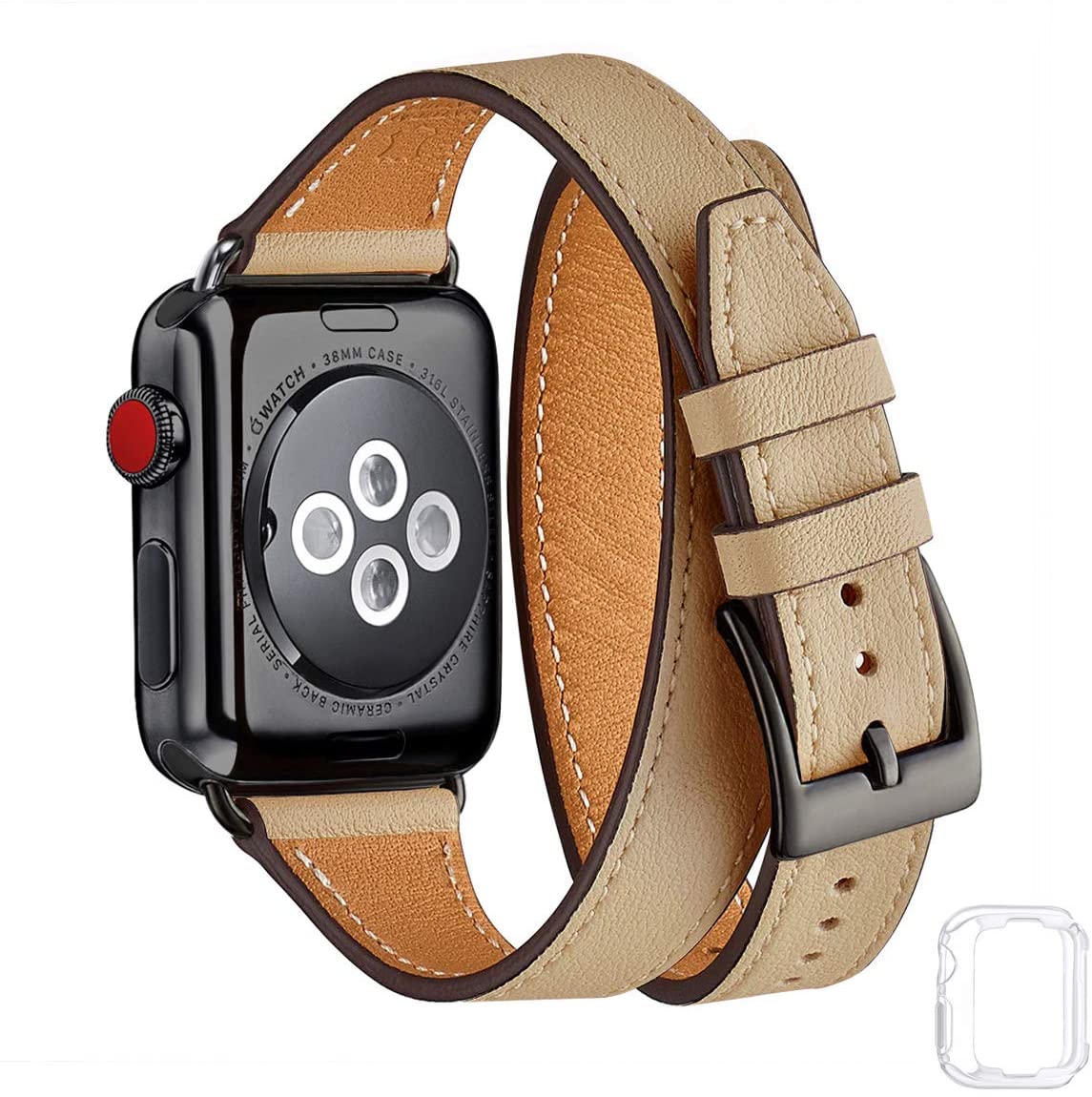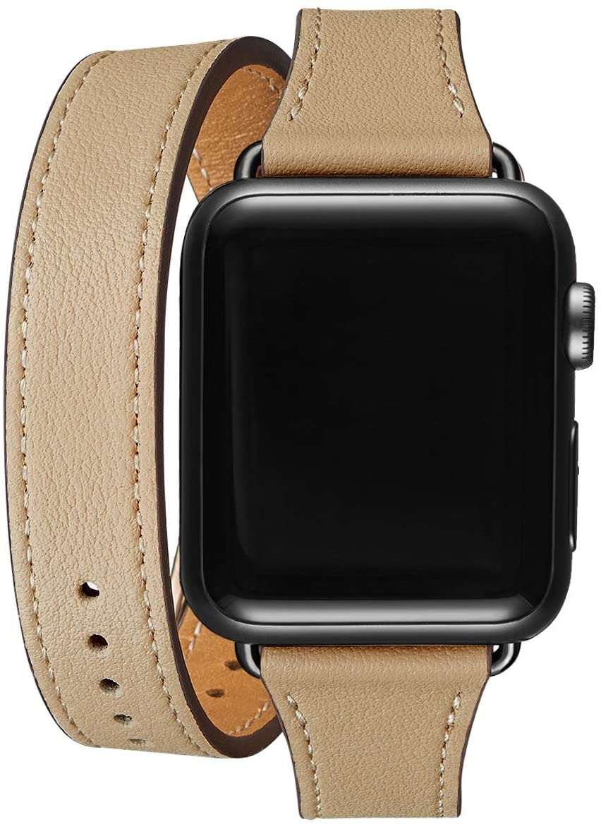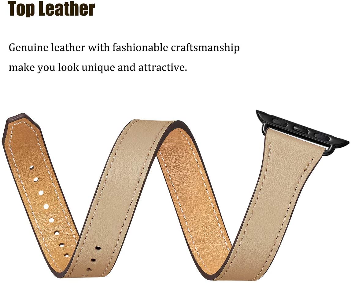 Genuine Leather Double Tour Band Compatible for Apple Watch 38mm, 40mm, 41mm, 42mm 44mm 45mm 49mm, Designed Slim Replacement Strap for iWatch Series Hermès 9 Ultra 8 7 6 SE 5 4 3 2 1