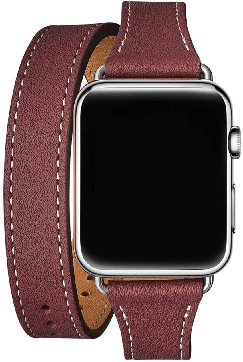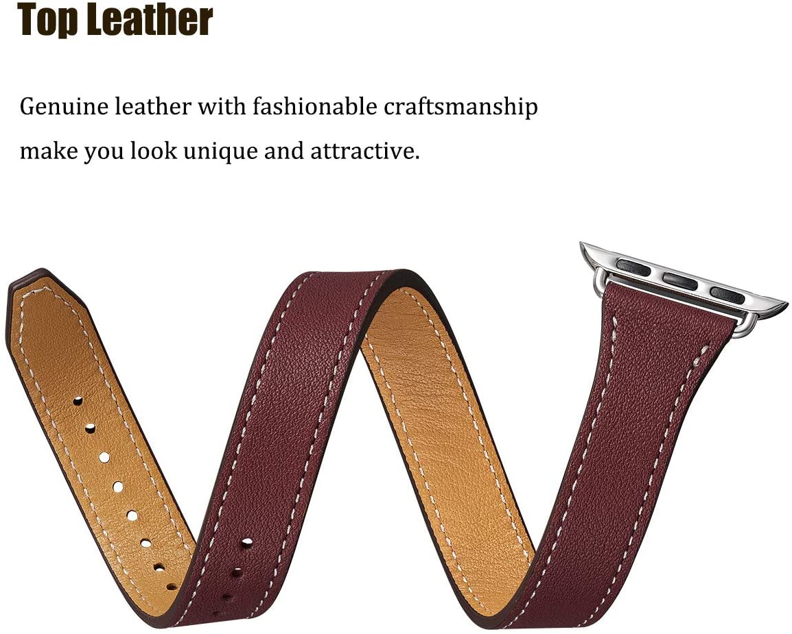Genuine Leather Double Tour Band Compatible for Apple Watch 38mm, 40mm, 41mm, 42mm 44mm 45mm 49mm, Designed Slim Replacement Strap for iWatch Series Hermès 9 Ultra 8 7 6 SE 5 4 3 2 1